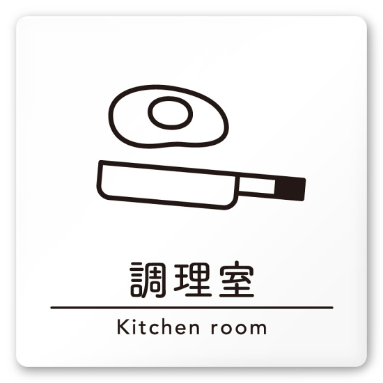 デザイナールームプレート 飲食店向け シンプル 調理室 白マットアクリル W150×H150 (AC-1515-RA-HS1-0111)