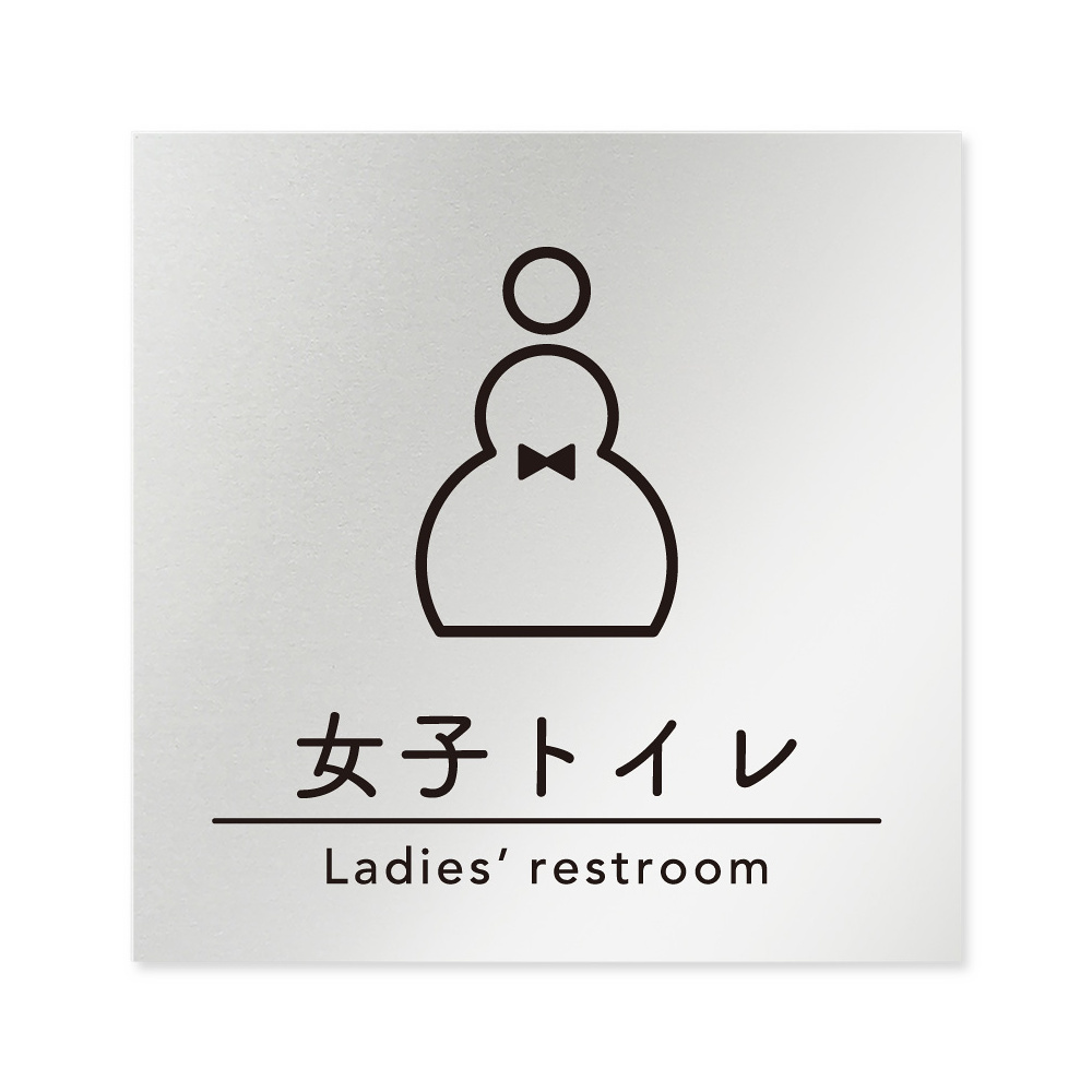 デザイナールームプレート 飲食店向け シンプル 女子トイレ1 アルミ板 W150×H150 (AL-1515-RB-HS1-0105)