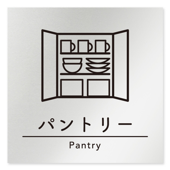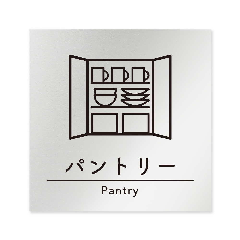 商品説明:デザイナールームプレート 飲食店向け シンプル パントリー アルミ板 W150×H150 (AL-1515-RB-HS1-0114)
