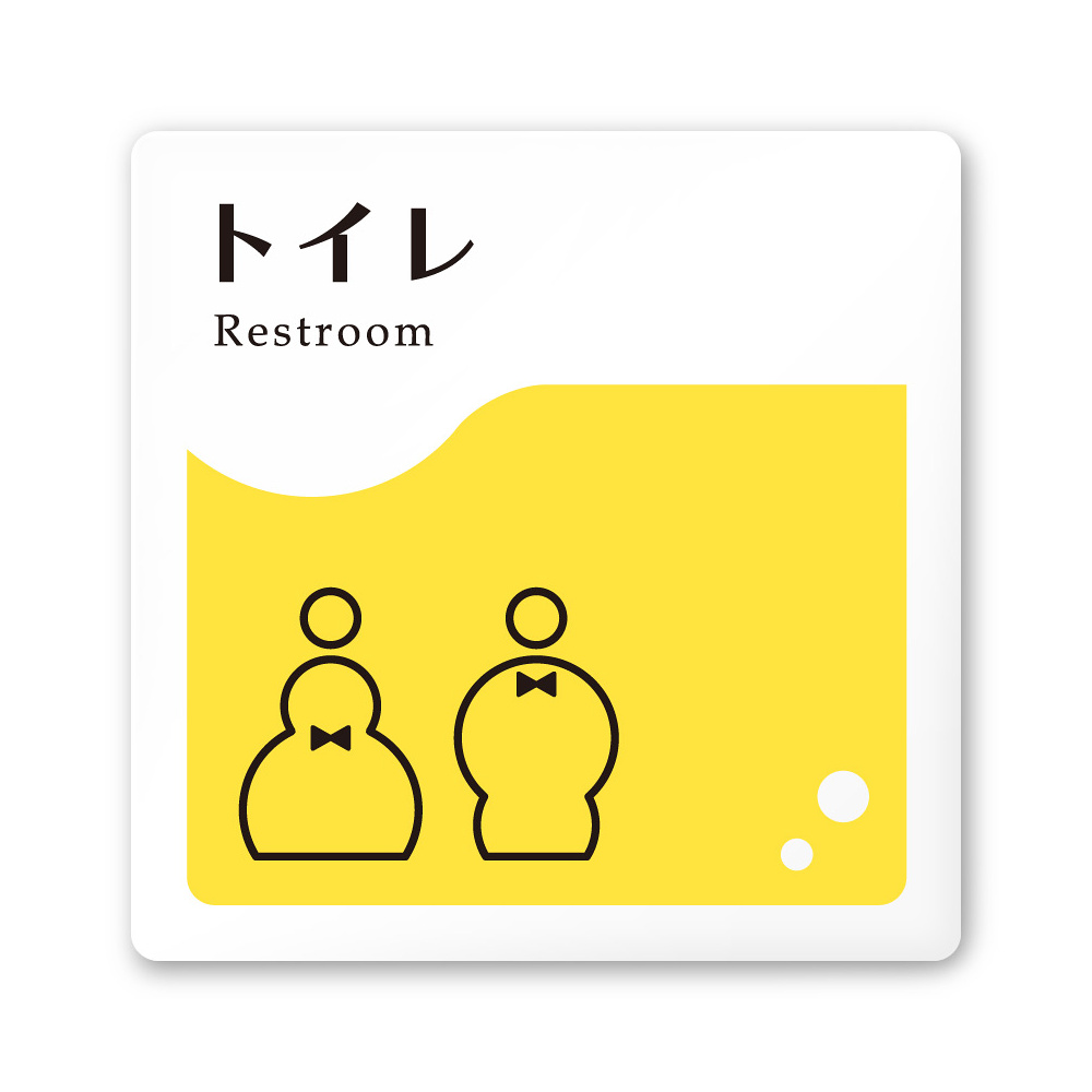 デザイナールームプレート 飲食店向け イエロー トイレ1 白マットアクリル W150×H150 (AC-1515-RA-HS2-0101)