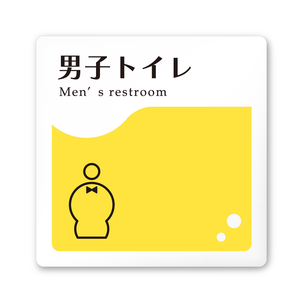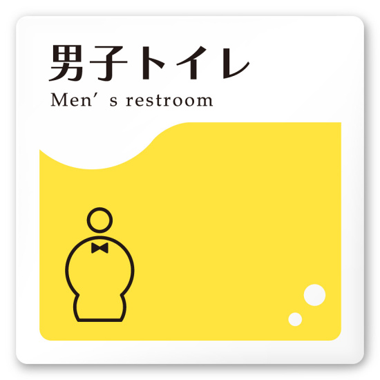 デザイナールームプレート 飲食店向け イエロー 男子トイレ1 白マットアクリル W150×H150 (AC-1515-RA-HS2-0103)