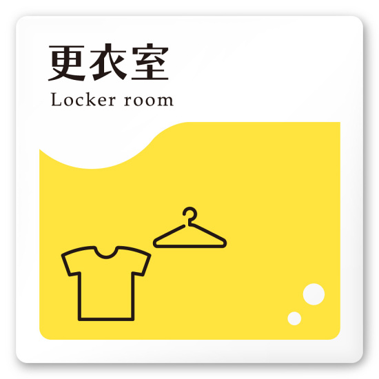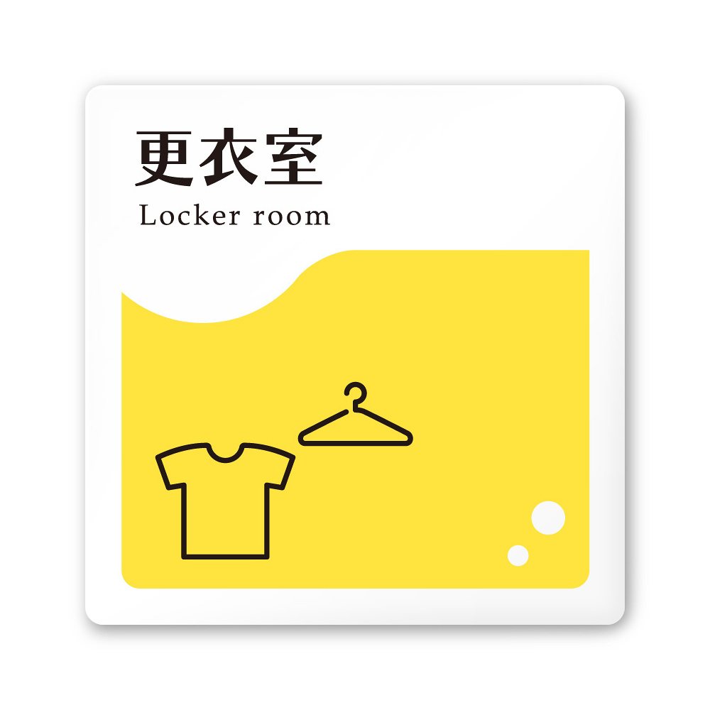 デザイナールームプレート 飲食店向け イエロー 更衣室 白マットアクリル W150×H150 (AC-1515-RA-HS2-0109)