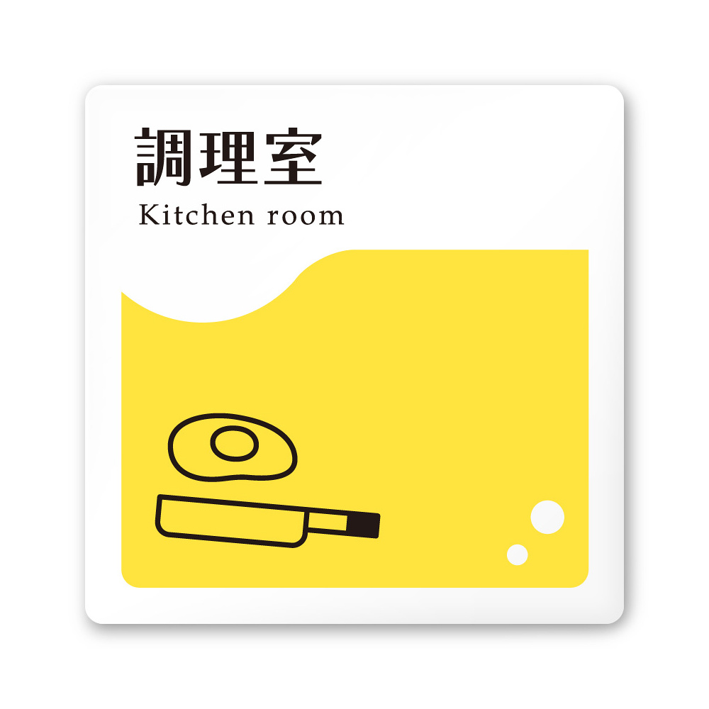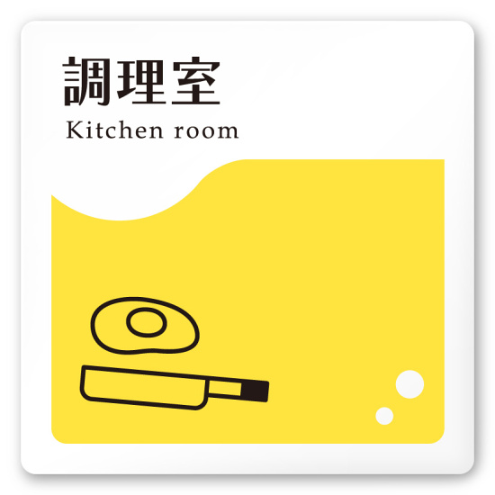 デザイナールームプレート 飲食店向け イエロー 調理室 白マットアクリル W150×H150 (AC-1515-RA-HS2-0111)