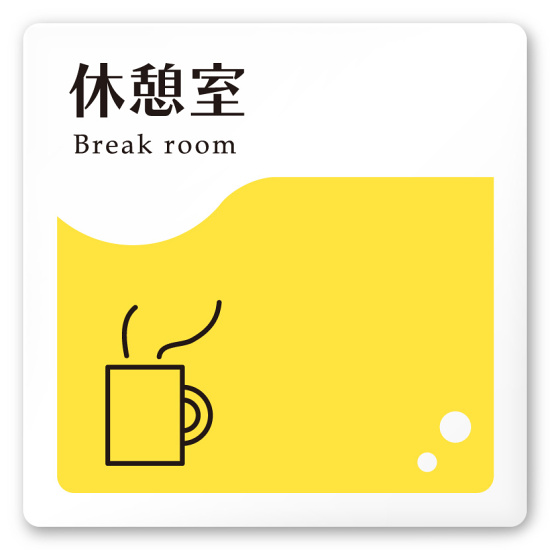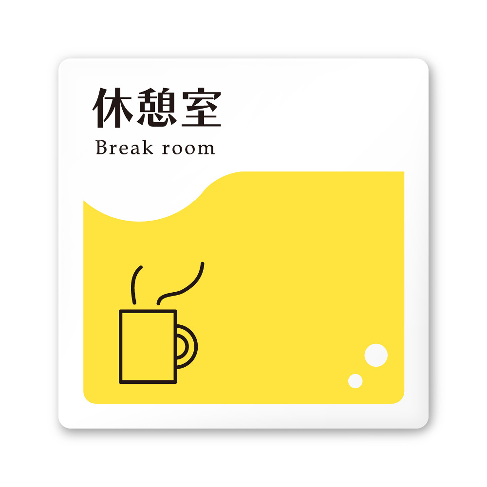 デザイナールームプレート 飲食店向け イエロー 休憩室 白マットアクリル W150×H150 (AC-1515-RA-HS2-0113)