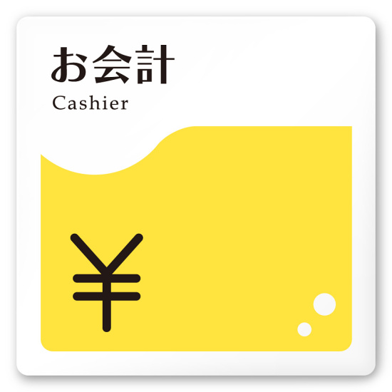 デザイナールームプレート 飲食店向け イエロー お会計 白マットアクリル W150×H150 (AC-1515-RA-HS2-0116)