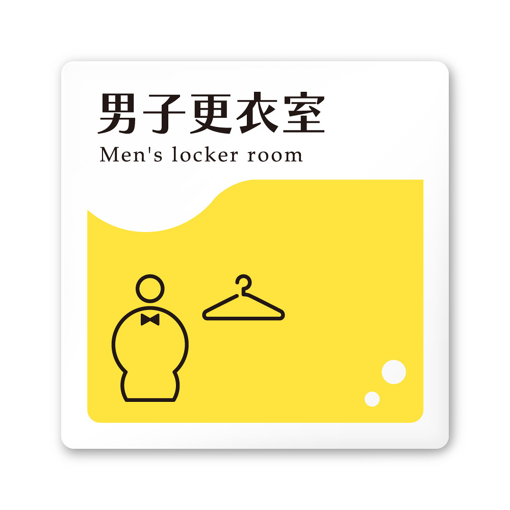 デザイナールームプレート 飲食店向け イエロー 男子更衣室 白マットアクリル W150×H150 (AC-1515-RA-HS2-0119)
