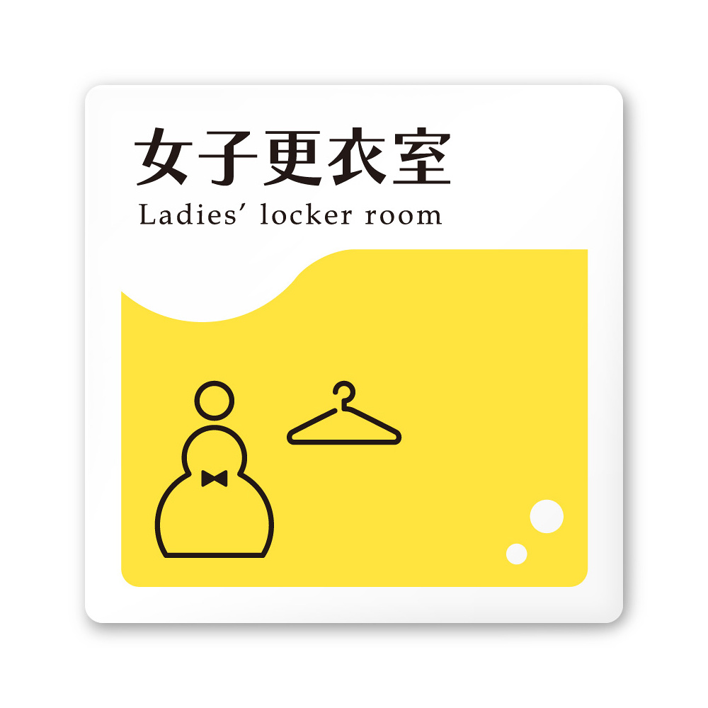 商品説明:デザイナールームプレート 飲食店向け イエロー 女子更衣室 白マットアクリル W150×H150 (AC-1515-RB-HS2-0120)