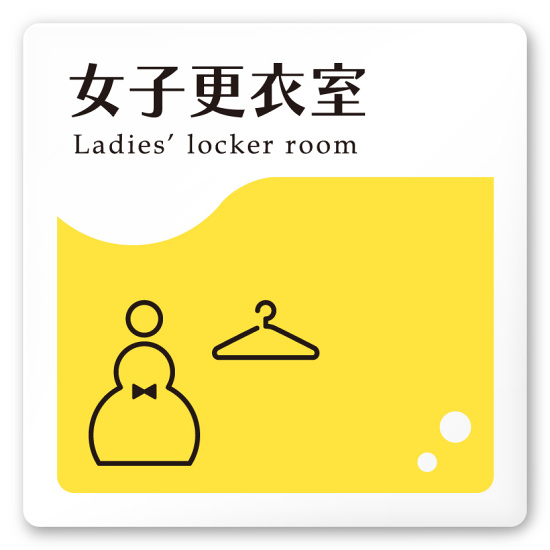 デザイナールームプレート 飲食店向け イエロー 女子更衣室 白マットアクリル W150×H150 (AC-1515-RB-HS2-0120)