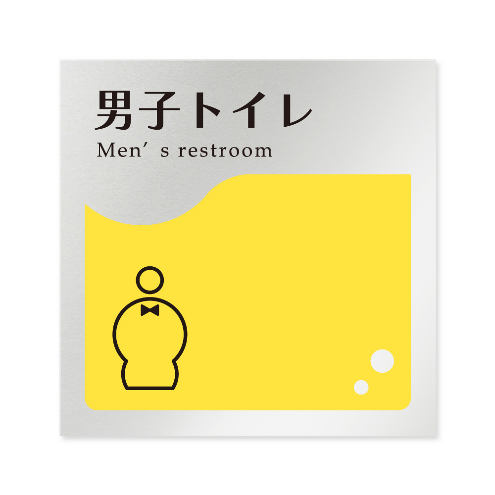 商品説明:デザイナールームプレート 飲食店向け イエロー 男子トイレ1 アルミ板 W150×H150 (AL-1515-RB-HS2-0103)