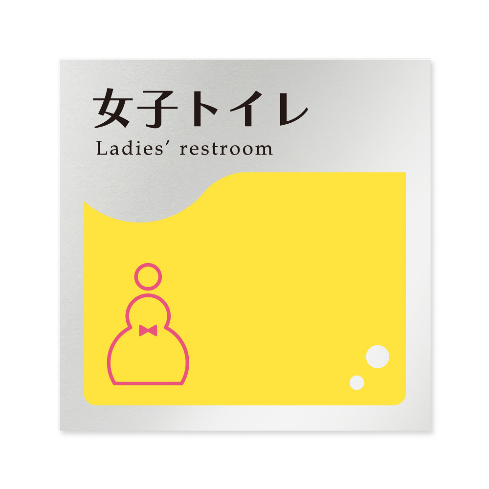 商品説明:デザイナールームプレート 飲食店向け イエロー 女子トイレ2 アルミ板 W150×H150 (AL-1515-RB-HS2-0106)