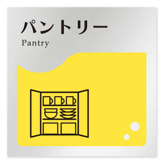 デザイナールームプレート 飲食店向け イエロー パントリー アルミ板 W150×H150 (AL-1515-RB-HS2-0114)