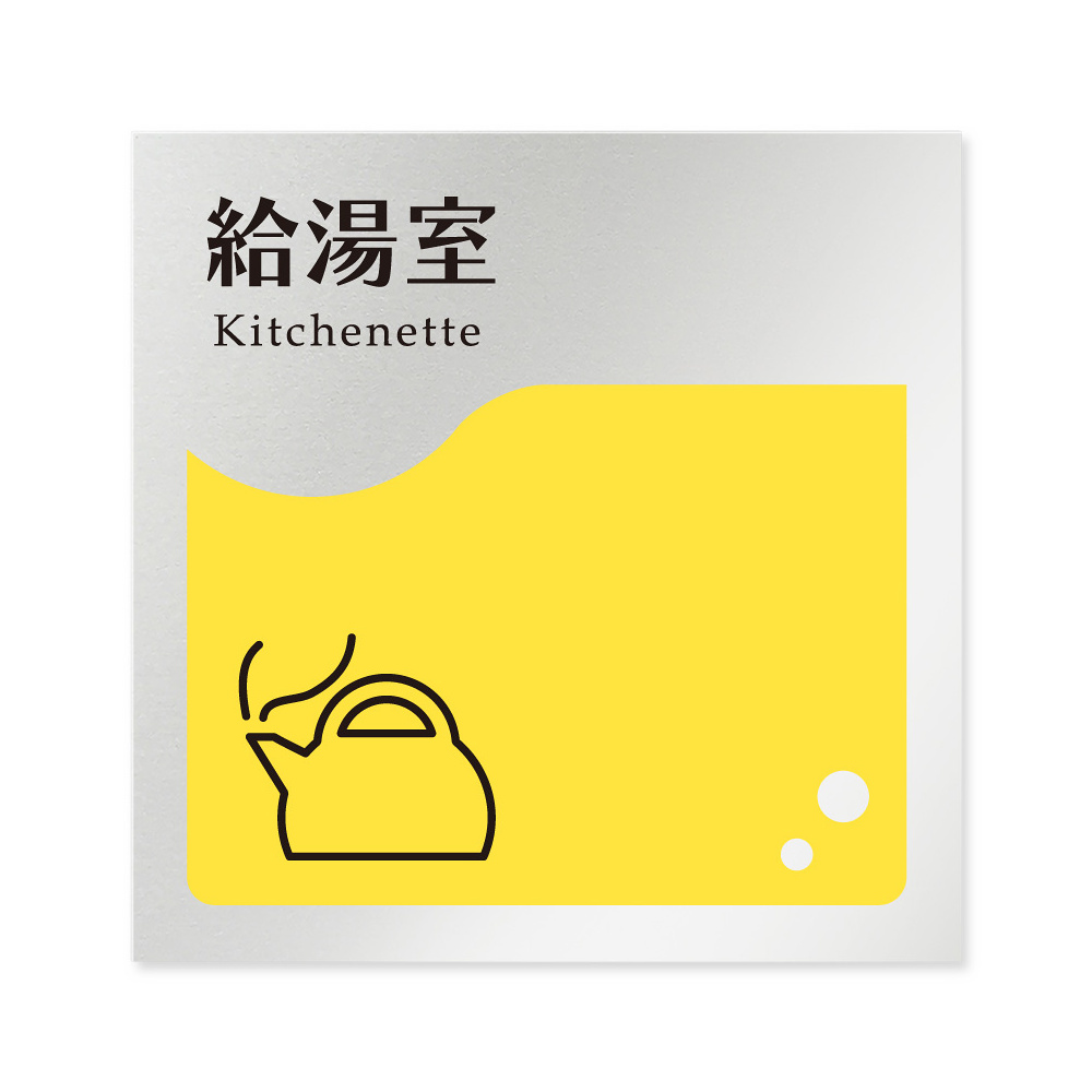 商品説明:デザイナールームプレート 飲食店向け イエロー 給湯室 アルミ板 W150×H150 (AL-1515-RB-HS2-0117)