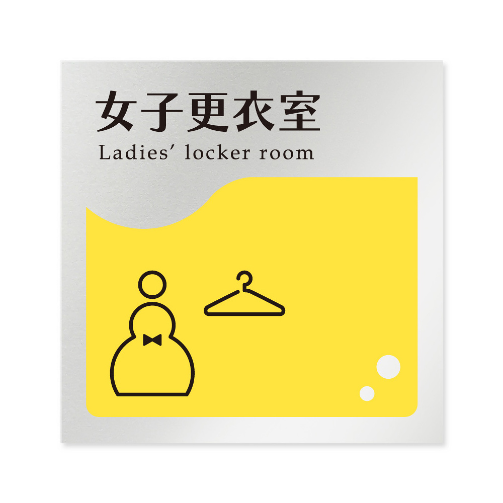 商品説明:デザイナールームプレート 飲食店向け イエロー 女子更衣室 アルミ板 W150×H151 (AL-1515-RA-HS2-0120)