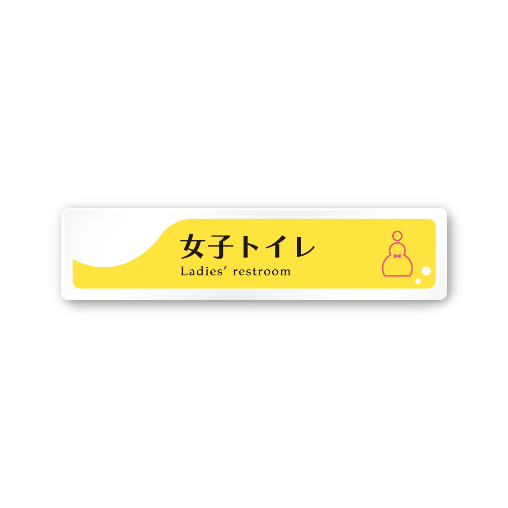 商品説明:デザイナールームプレート 飲食店向け イエロー 女子トイレ2 白マットアクリル W250×H60 (AC-2560-RA-HS2-0206)