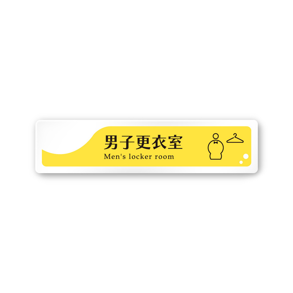 商品説明:デザイナールームプレート 飲食店向け イエロー 男子更衣室 白マットアクリル W250×H60 (AC-2560-RA-HS2-0219)