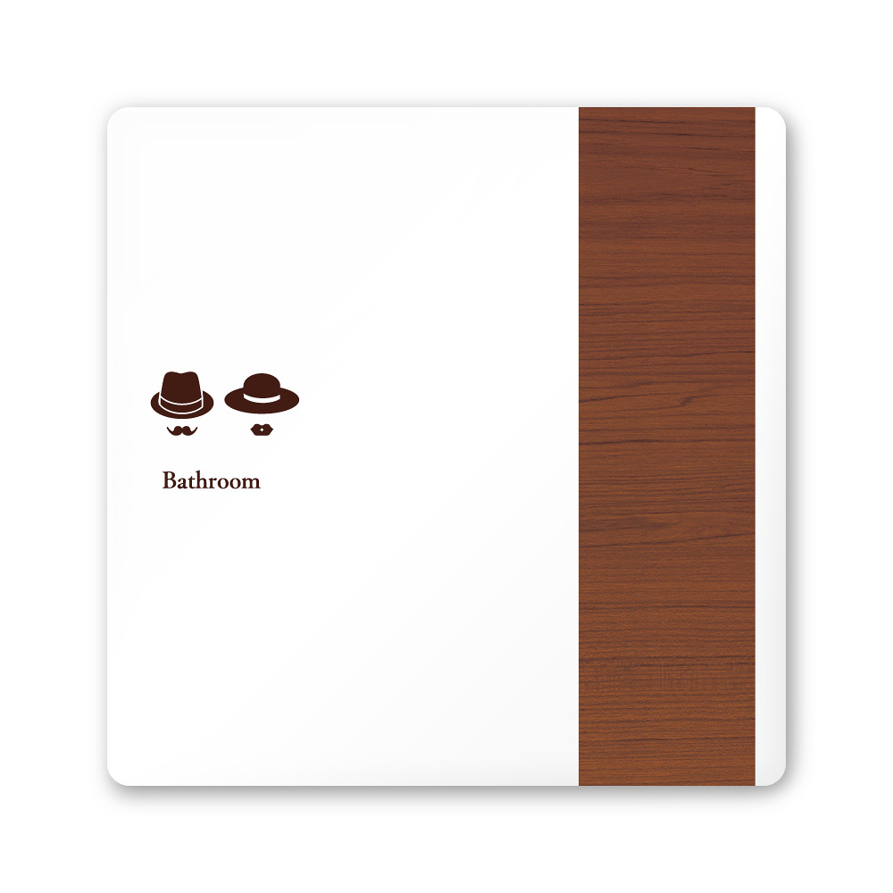 デザイナールームプレート 飲食店向け 木目 トイレ1 白マットアクリル W150×H150 (AC-1515-RA-IM1-0101)