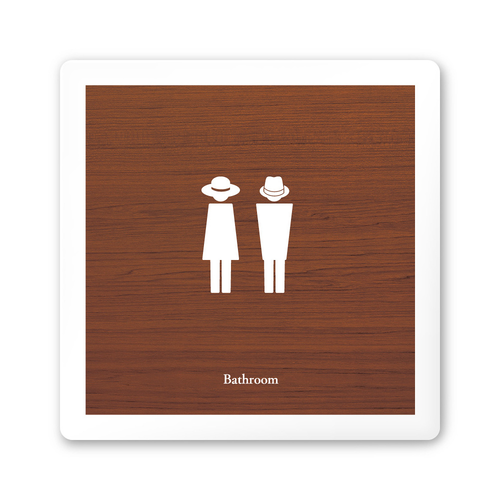 デザイナールームプレート 飲食店向け 木目 トイレ2 白マットアクリル W150×H150 (AC-1515-RA-IM1-0102)