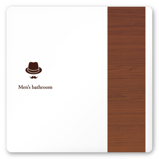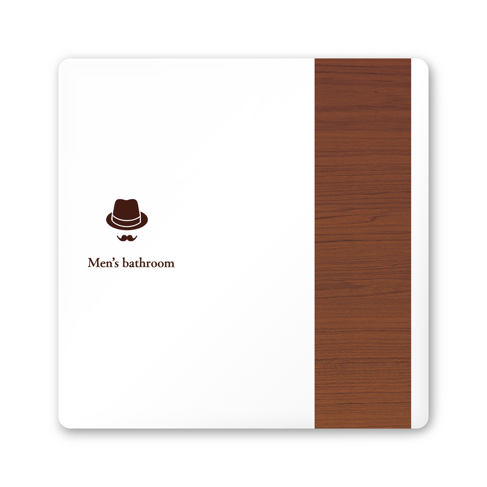 デザイナールームプレート 飲食店向け 木目 男子トイレ1 白マットアクリル W150×H150 (AC-1515-RA-IM1-0103)