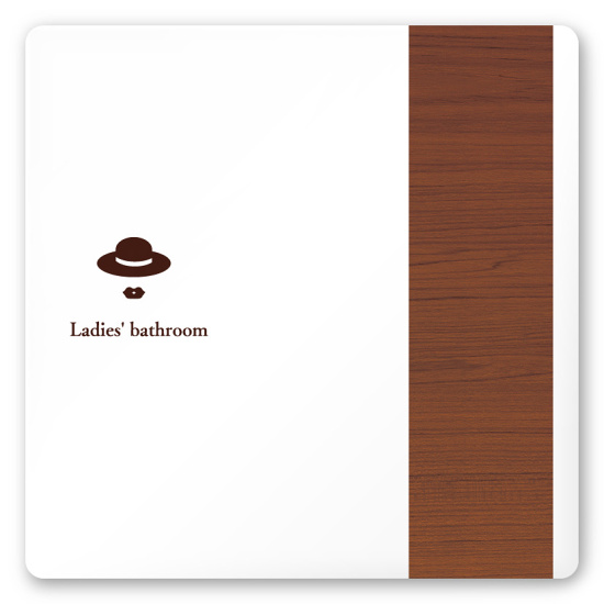 デザイナールームプレート 飲食店向け 木目 女子トイレ1 白マットアクリル W150×H150 (AC-1515-RA-IM1-0105)