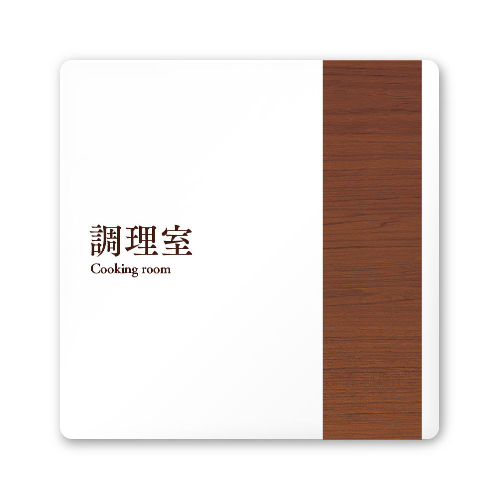デザイナールームプレート 飲食店向け 木目 調理室 白マットアクリル W150×H150 (AC-1515-RA-IM1-0111)