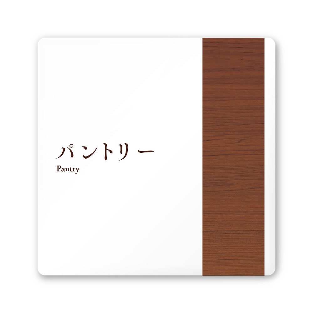 デザイナールームプレート 飲食店向け 木目 パントリー 白マットアクリル W150×H150 (AC-1515-RA-IM1-0114)