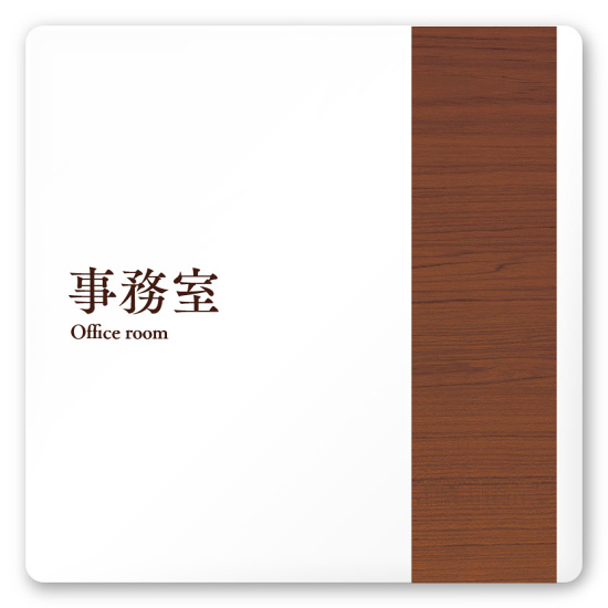 商品説明:デザイナールームプレート 飲食店向け 木目 事務室 白マットアクリル W150×H150 (AC-1515-RA-IM1-0115)