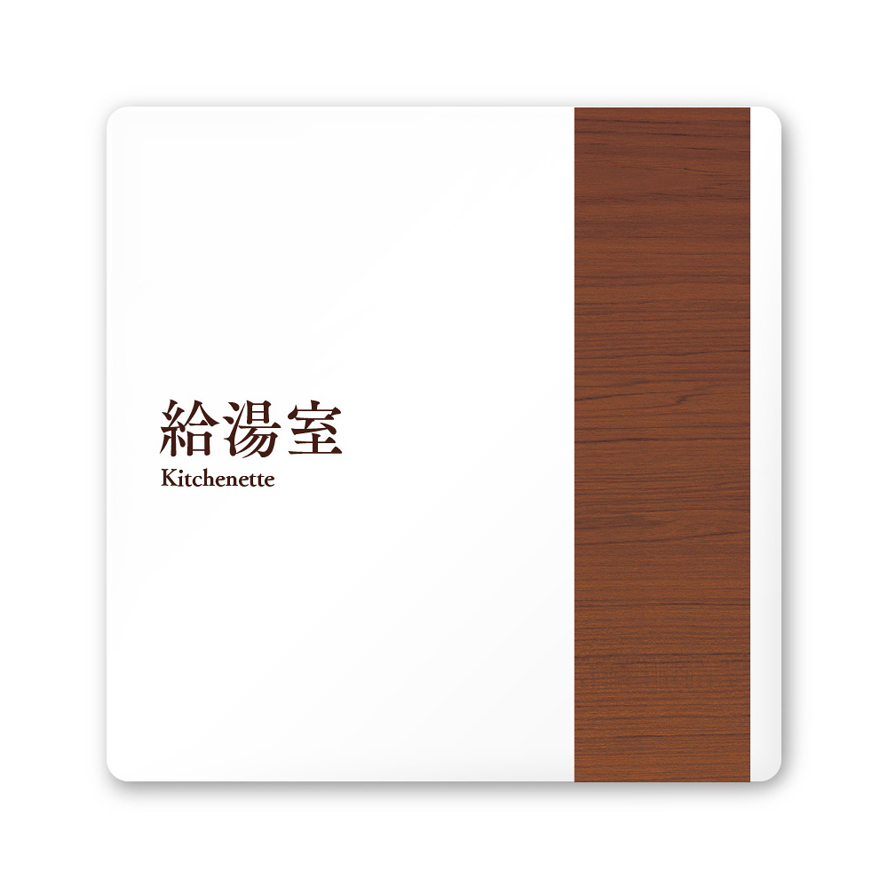 デザイナールームプレート 飲食店向け 木目 給湯室 白マットアクリル W150×H150 (AC-1515-RA-IM1-0117)