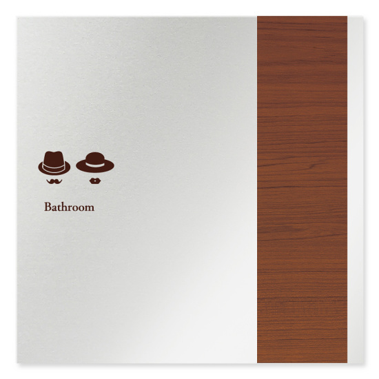 デザイナールームプレート 飲食店向け 木目 トイレ1 アルミ板 W150×H150 (AL-1515-RB-IM1-0101)