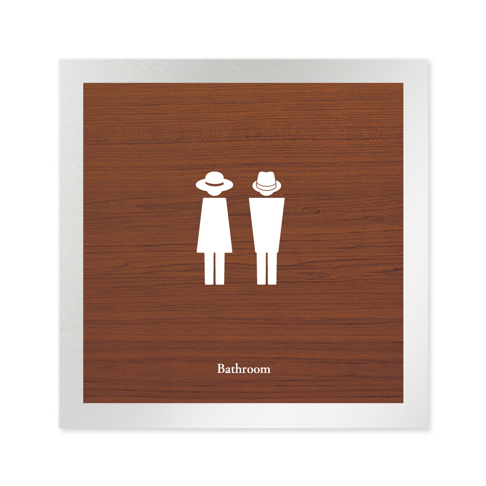 商品説明:デザイナールームプレート 飲食店向け 木目 トイレ2 アルミ板 W150×H150 (AL-1515-RB-IM1-0102)