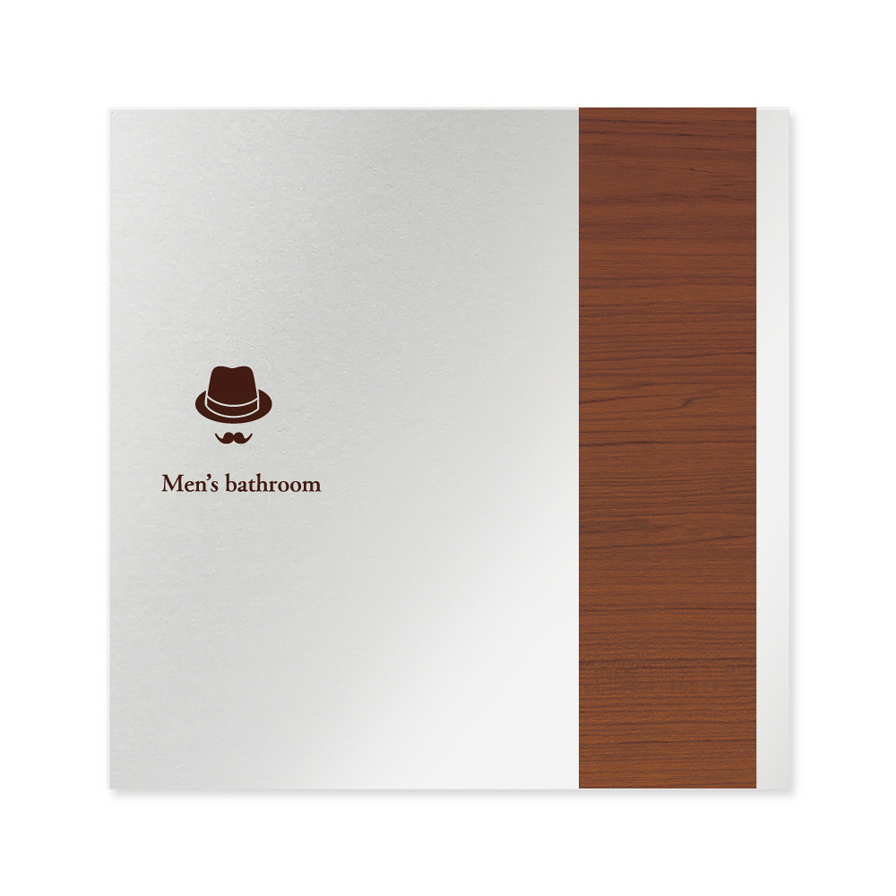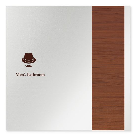 商品説明:デザイナールームプレート 飲食店向け 木目 男子トイレ1 アルミ板 W150×H150 (AL-1515-RB-IM1-0103)