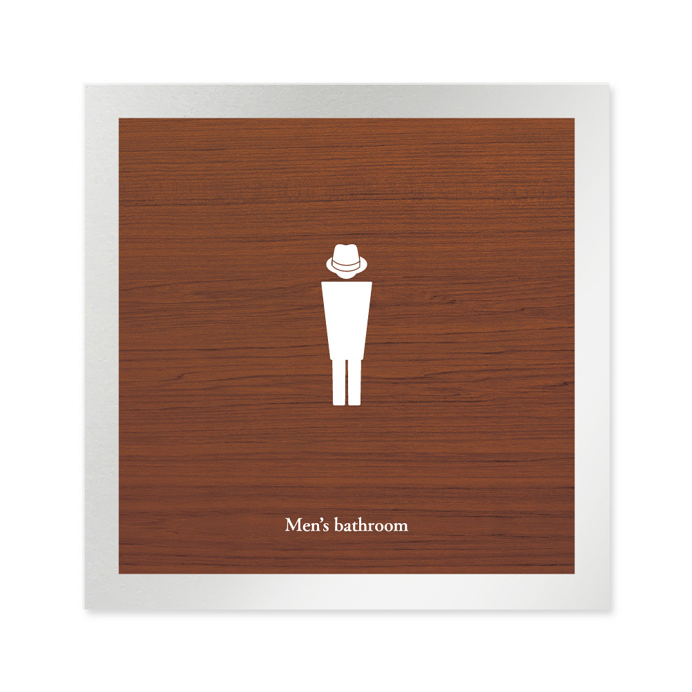 商品説明:デザイナールームプレート 飲食店向け 木目 男子トイレ2 アルミ板 W150×H150 (AL-1515-RB-IM1-0104)