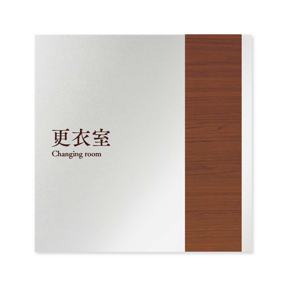 商品説明:デザイナールームプレート 飲食店向け 木目 更衣室 アルミ板 W150×H150 (AL-1515-RB-IM1-0109)