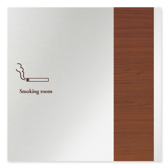 商品説明:デザイナールームプレート 飲食店向け 木目 喫煙室 アルミ板 W150×H150 (AL-1515-RB-IM1-0112)