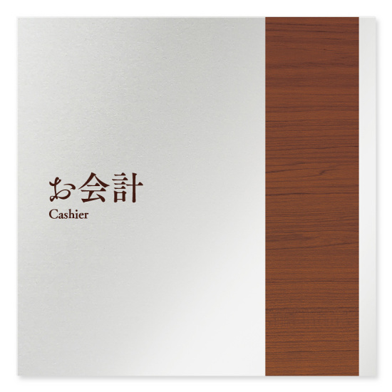 商品説明:デザイナールームプレート 飲食店向け 木目 お会計 アルミ板 W150×H150 (AL-1515-RB-IM1-0116)