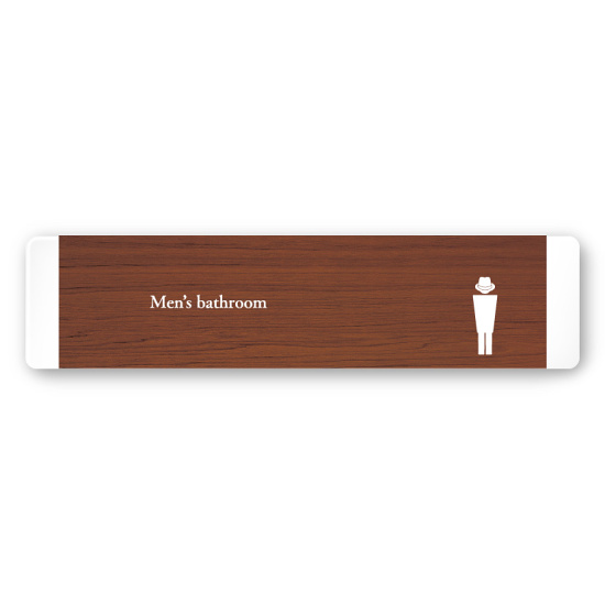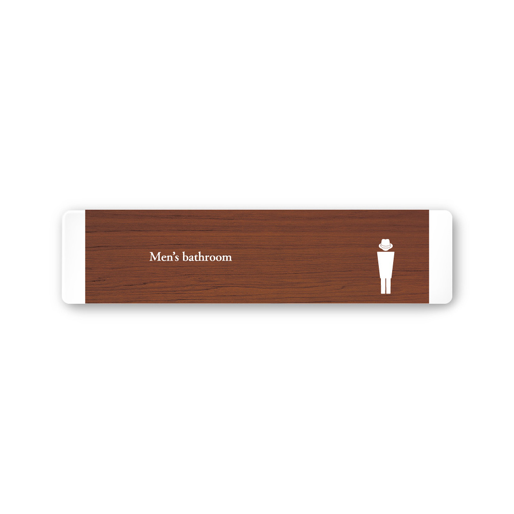 デザイナールームプレート 飲食店向け 木目 男子トイレ2 白マットアクリル W250×H60 (AC-2560-RA-IM1-0204)