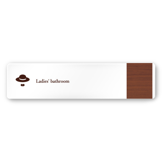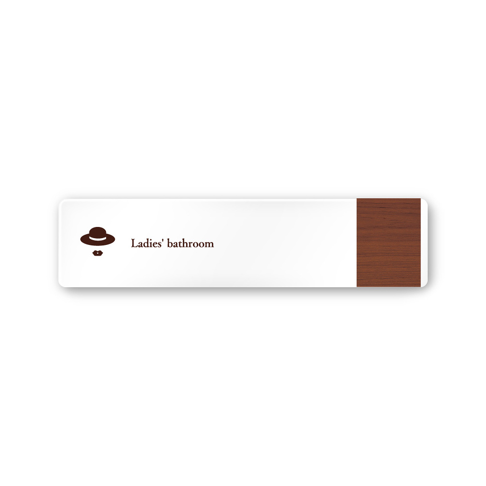 デザイナールームプレート 飲食店向け 木目 女子トイレ1 白マットアクリル W250×H60 (AC-2560-RA-IM1-0205)