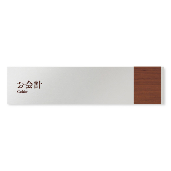 商品説明:デザイナールームプレート 飲食店向け 木目 お会計 アルミ板 W250×H60 (AL-2560-RB-IM1-0216)
