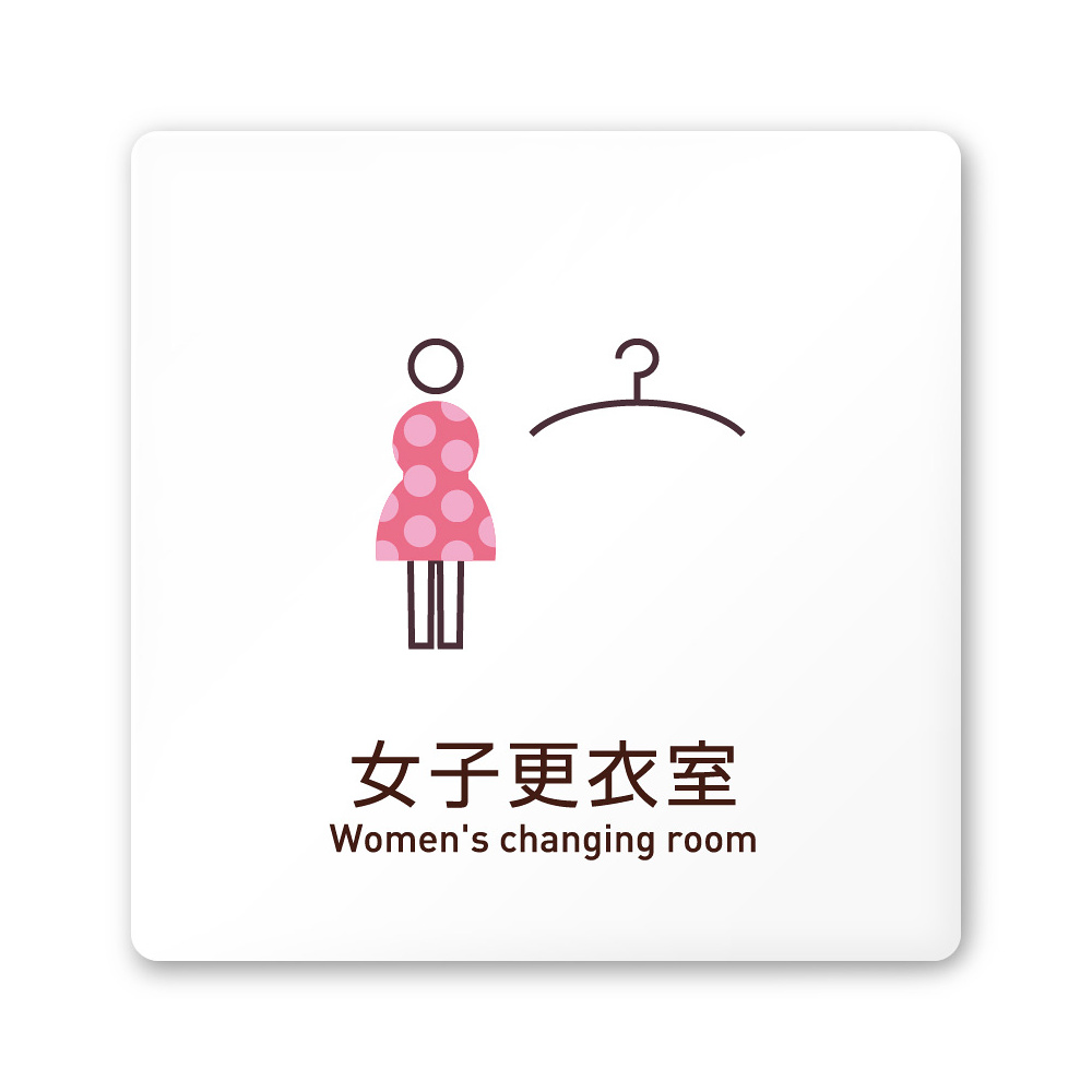 商品説明:デザイナールームプレート 飲食店向け シンプル 女子更衣室 白マットアクリル W150×H150 (AC-1515-RB-IM2-0120)