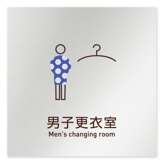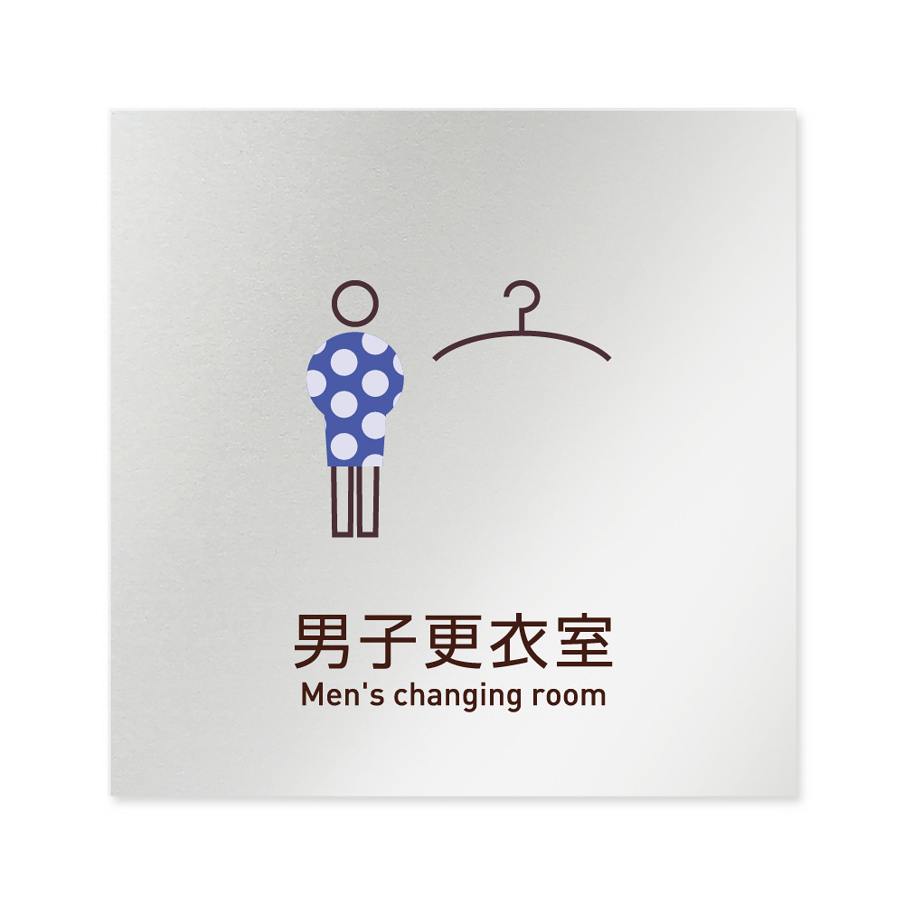 商品説明:デザイナールームプレート 飲食店向け シンプル 男子更衣室 アルミ板 W150×H150 (AL-1515-RB-IM2-0119)