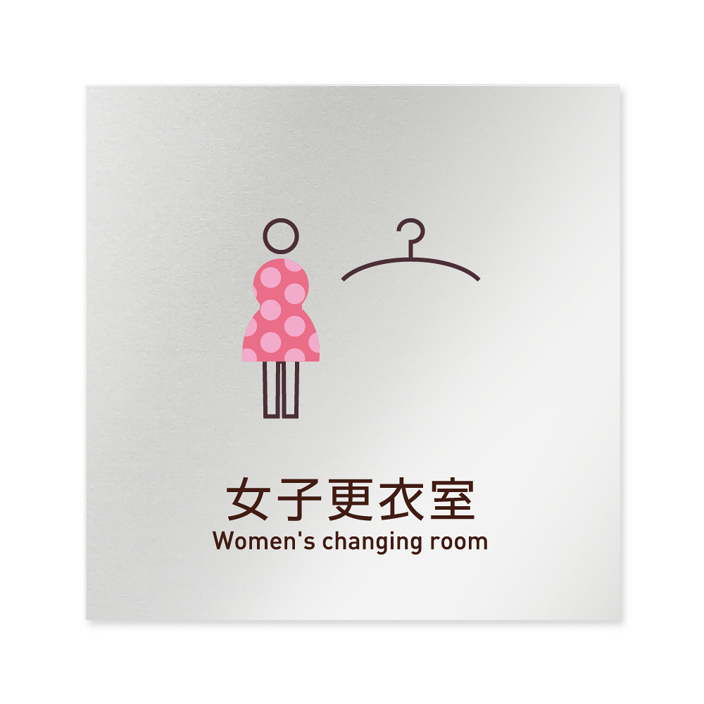 デザイナールームプレート 飲食店向け シンプル 女子更衣室 アルミ板 W150×H151 (AL-1515-RA-IM2-0120)