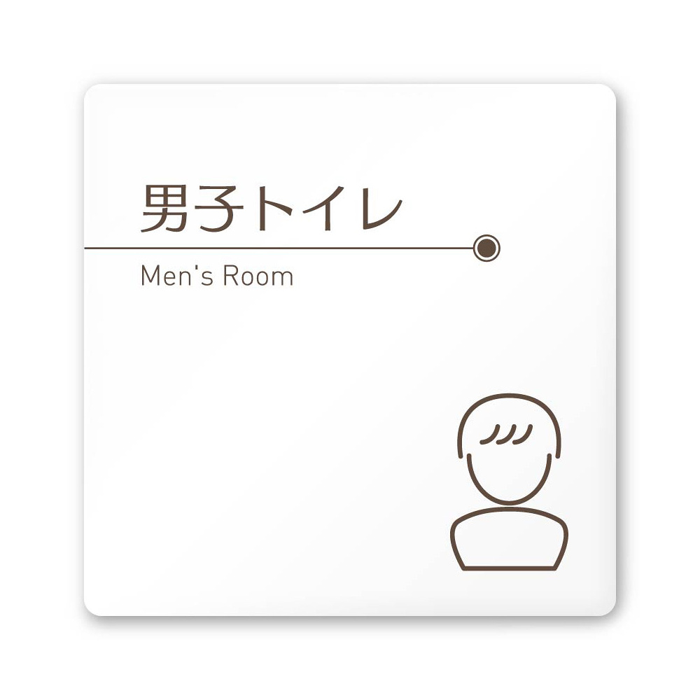 デザイナールームプレート 飲食店向け ブラウン 男子トイレ1 白マットアクリル W150×H150 (AC-1515-RA-KM1-0103)