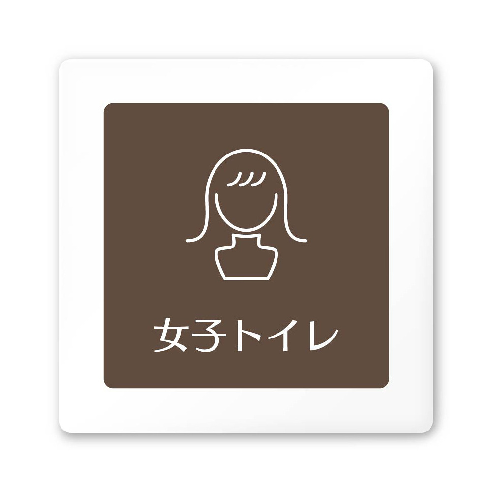デザイナールームプレート 飲食店向け ブラウン 女子トイレ2 白マットアクリル W150×H150 (AC-1515-RA-KM1-0106)