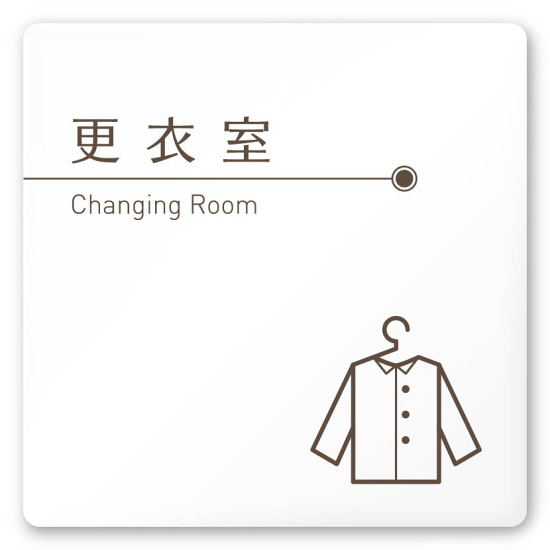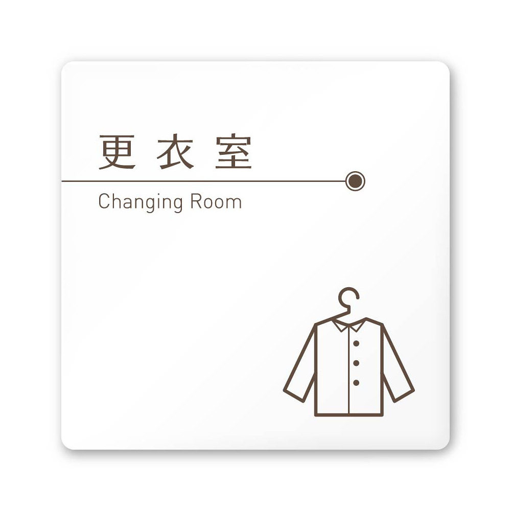 デザイナールームプレート 飲食店向け ブラウン 更衣室 白マットアクリル W150×H150 (AC-1515-RA-KM1-0109)