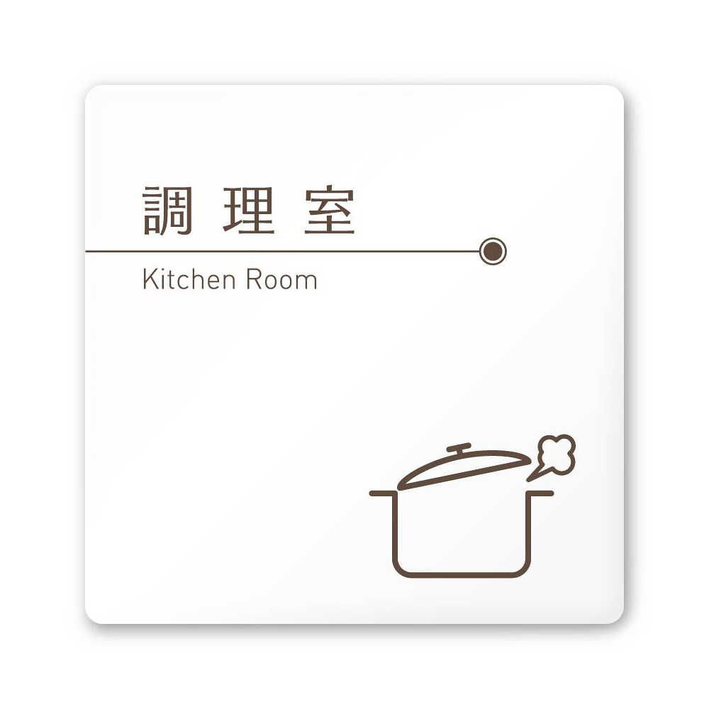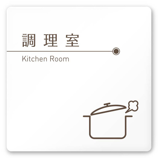 デザイナールームプレート 飲食店向け ブラウン 調理室 白マットアクリル W150×H150 (AC-1515-RA-KM1-0111)