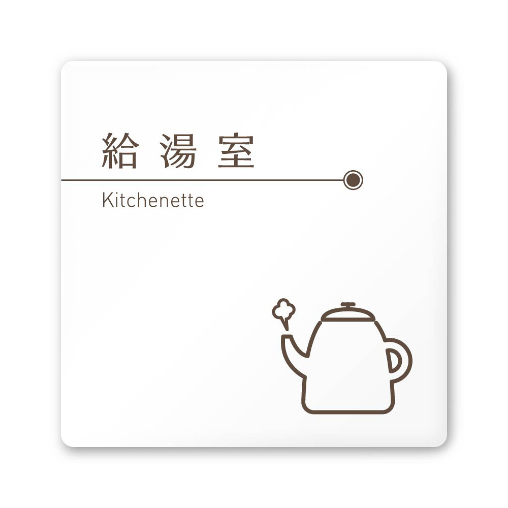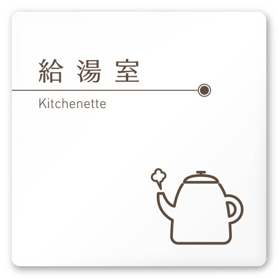 デザイナールームプレート 飲食店向け ブラウン 給湯室 白マットアクリル W150×H150 (AC-1515-RA-KM1-0117)