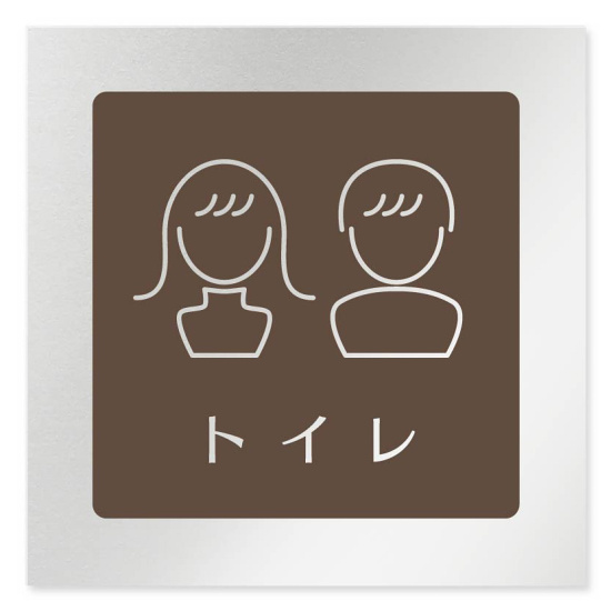 デザイナールームプレート 飲食店向け ブラウン トイレ2 アルミ板 W150×H150 (AL-1515-RB-KM1-0102)