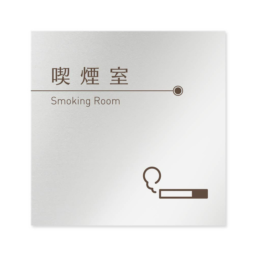 デザイナールームプレート 飲食店向け ブラウン 喫煙室 アルミ板 W150×H150 (AL-1515-RB-KM1-0112)