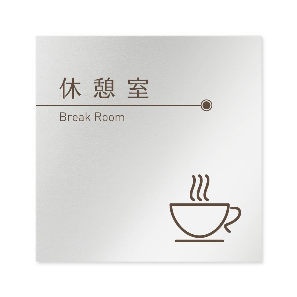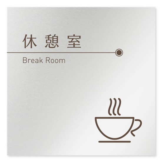デザイナールームプレート 飲食店向け ブラウン 休憩室 アルミ板 W150×H150 (AL-1515-RB-KM1-0113)