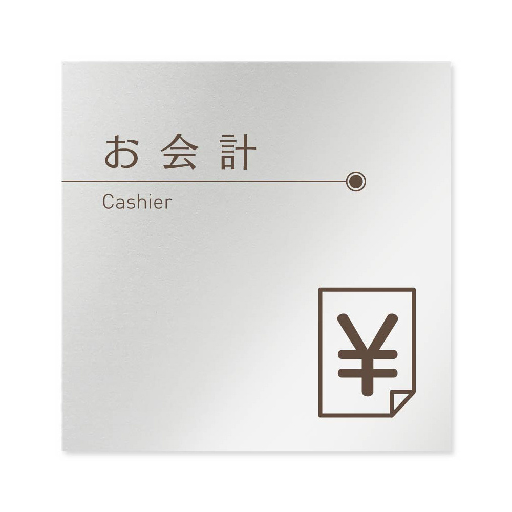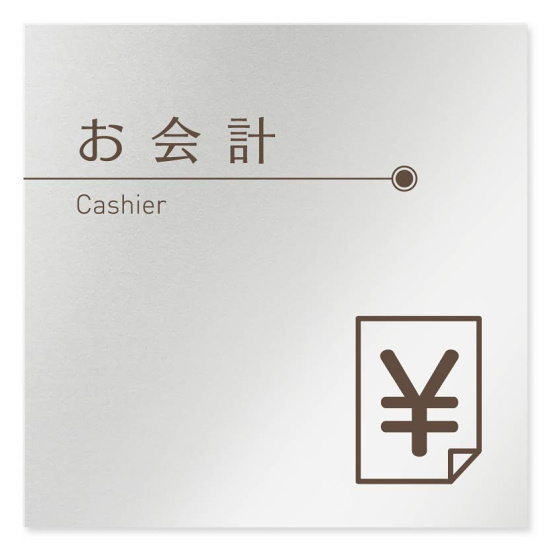 デザイナールームプレート 飲食店向け ブラウン お会計 アルミ板 W150×H150 (AL-1515-RB-KM1-0116)