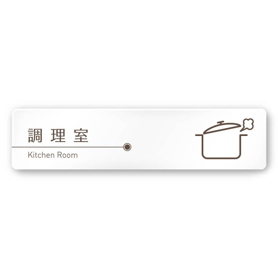 デザイナールームプレート 飲食店向け ブラウン 調理室 白マットアクリル W250×H60 (AC-2560-RA-KM1-0211)